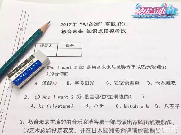 要说如何证明自己对初音未来爱的深沉,最合适的莫过于一张考试卷了吧!《初音速》入学小测验来啦!“《B Who I want 2 B》是初音未来与被称为平成四大歌姬中的哪一位合作的曲子?”“初音未来首次在武道馆举办的演唱会是哪一场?”“初音未来首次登上的是自由国民社发行的哪本字典?”这套卷子的样式,让人感觉忽然穿越回了中学年代,还是一样的配方还是一样的味道。这份在不少人看来超级难的卷子,有人可是大笔一挥就是100分哦,真爱粉!就是牛!