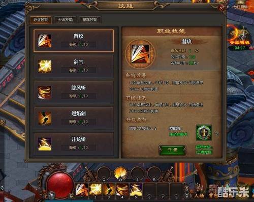 小提示:可以拖动技能面板中的技能至技能栏中。