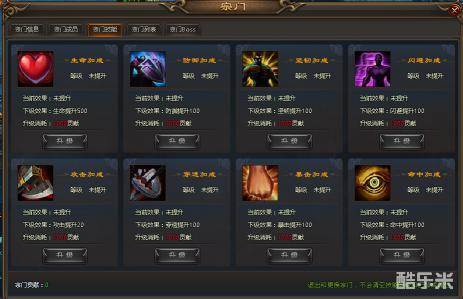 使用宗门贡献可以在宗门神学院中提升各种技能,增加人物的各项属性,是稳定提升人物战斗力的有效途径。离开宗门后,不会清空宗门技能等级和已加成的属性。