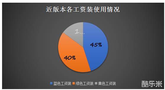 通过上面这张图表我们可以发现,近几个版本(从7.9后)工资装出场情况大致是这种布局:绿色工资装和蓝色工资装出场率最多,几乎占了90%,而黄色工资装的出场就相对而言比较少了。