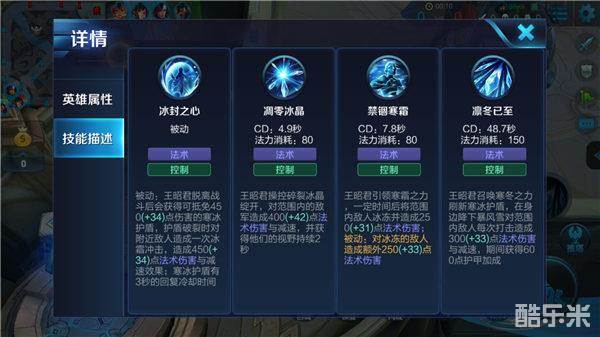 王昭君的二技能是她的控制技能,并且会对被冻住的敌人造成额外的法术伤害,使用时配上一技能的减速可以大大提高命中率,合理利用该技能冰冻住更多的人才能发挥出它最大的效果。