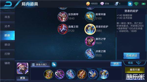 贤者的庇护可以让兰陵王被击杀时,通过短暂的读秒立即复活,并为兰陵王回复一定的血量,结合自身的二技能,可以让兰陵王在复活之后利用二技能快速回复自身的血量,同时利用一技能和大招给予敌人重创。