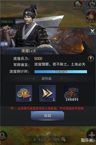 攘外必先安内,清理敌寇,击杀流寇、黄巾、土匪,才能使得百姓安居乐业。君临天下是为期一周的活动,第一天根据击杀这些野怪获得积分,当天可以根据最终积分领取个人阶段排名奖励。其中,流寇每天出现三波,在主公已经占领的土地上出现4块,主公派兵剿灭才能保证自己的土地不被流寇侵蚀。主公们每天可攻打的黄巾余党次数由讨伐令限制,不同资源带的黄巾等级不一样,等级越高的黄巾奖励越丰厚,所以主公们要在能力范围内尽可能多刷高等级的黄巾余党。而土匪兵力强大,需要在二级跟三级的资源带才会出现,攻打他们可以获得武将进修材料,不过,每天攻打的次数非常有限,主公们也可以额外花费元宝购买攻打次数。