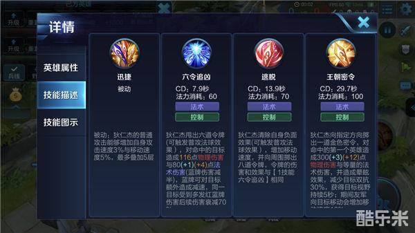 被动-迅捷:狄仁杰的普通攻击能够提高自身的攻击速度和移动速度(可叠加但有上限)。