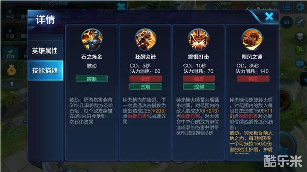 被动-石之炼金:钟无艳造成的所有伤害,都有一定几率将敌方英雄石化,每个敌方英雄在数秒内只会受到一次石化效果。