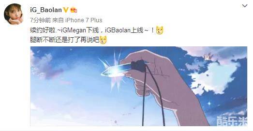 就在刚才,IG_Baolan更新微博,宣布跟IG续约: