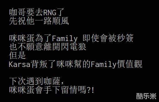 随着FW和RNG双方正式官宣Karsa转会RNG,这位LMS明星打野的去处终于尘埃落定,对此台湾的网友们这样评价:
