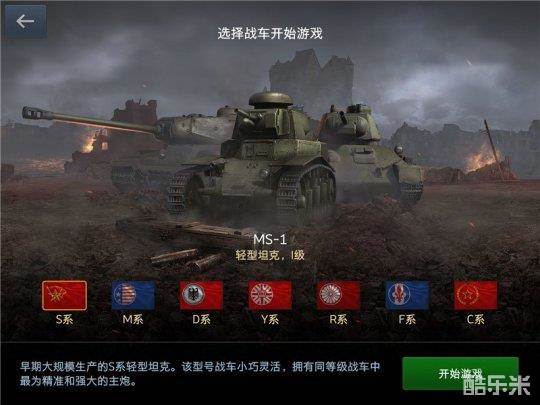 游戏中拥有C、S、D、M、Y、F、R共 7系坦克,每系有着自己的坦克研发科技树。从性能落后的低级坦克,到威力初显的中级坦克,再到砥柱中流的高级坦克,你必须通过战斗获得资源,进而研发科技,解锁更强悍的坦克,才能与更强大的对手进行战斗。