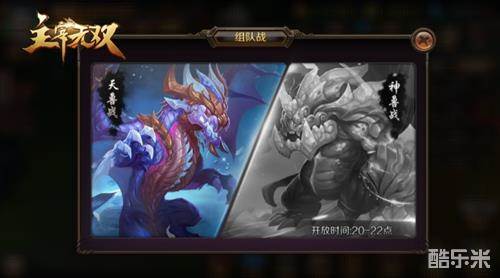 2、【组队】点击组队按钮后将弹出新的窗口,选择进入“天兽战”或“神兽战”,目前神兽战还在准备之中,暂不开放。见下图提醒: