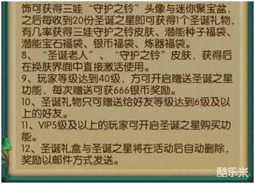 当被赠送圣诞之星达到88个时,打开圣诞礼包必定获得三娃“守护之铃”头像与迷你聚宝盆一个!