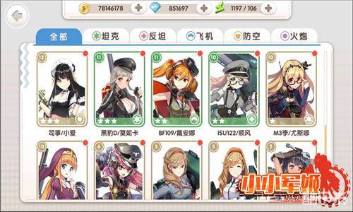 令人眼花缭乱的军姬通过兵种进行分类,总共有坦克、反坦、飞机、火炮、防空炮五种类型,通过名字或许已经有聪明的司令官发现了是相互克制的关系,所以通过合适的搭配可达成以下克上不可能任务。