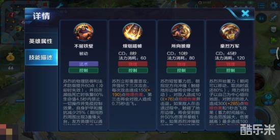 被动:苏烈释放技能后三秒内会持续对周围的防御塔与敌人造成一定量的伤害,该效果确保了肉装苏烈也能有一定的输出能力。