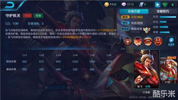 1.使用张飞的关键在于对二技能的把控,尤其是在团战中,要确保二技能护盾可以覆盖更多的队友,这样我方团战的容错率会大大提高;另外在大招处于冷却时间中也要通过二技能快速叠加狂意,这样在每波团战前都有大招,我方取胜的概率才会越大。