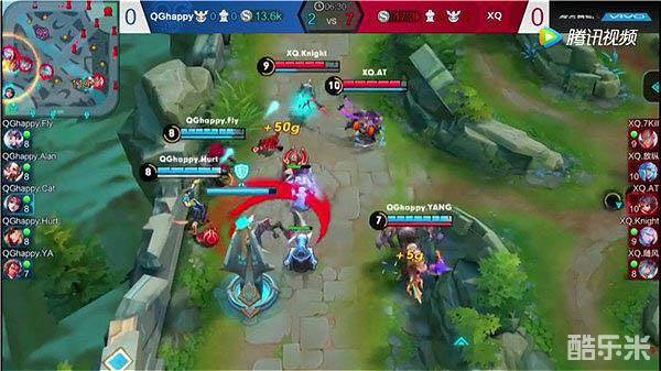 QGhappy战队为蓝色方,其中射手马可波罗作为打野英雄使用,为了弥补蓝方清野速度慢的缺陷,辅助英雄张飞也携带了惩击,便于前期入侵红方野区,或者提升前期己方的清野速度。XQ战队为红色方,阵容搭配相对普通,其中诸葛亮与貂蝉对线,清线略占优势。此外,相比于蓝色方,红方英雄在前、中期相对强势。因此,红色方可以选择开局入侵蓝方野区的打法,并且快速推进,不拖后期。