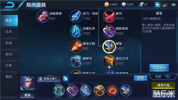 六神装推荐:抵抗之靴+暗影战斧+冰痕之握+不祥征兆+不死鸟之眼+破军