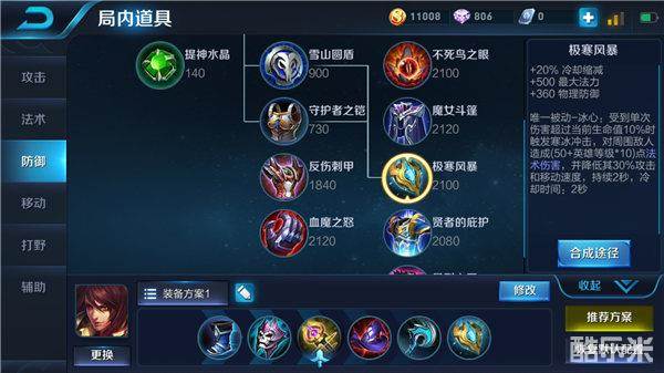六神装推荐:秘法之靴+痛苦面具+辉月+博学者之怒+冰霜法杖+极寒风暴