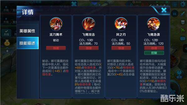 解析:娜可露露释放该技能后改变自身的状态,短时间内提升自身的移动速度,再次释放飞鹰急袭可以对技能指定的区域对敌人造成伤害和减速,并且受到伤害敌人会在短时间内减低百分比的伤害输出。