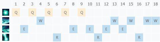 主Q副E,前期学1级的W即可,通常死歌可以在3级的时候学2级来增加伤害,方便补刀,也可以学2级的E来增加续航能力,4级要不要学W还是看情况的,个人感觉前期即使有人帮死歌抓,也未必能抓死,因此推荐8级的时候再学W,用2级E保证蓝量的充足。