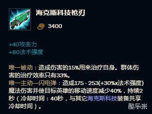 前面的符文推荐中提到过,死歌可以选择贪婪的猎手,这个符文通过参与击杀英雄就能获得技能伤害转化为治疗的效果,与之般配的另一件装备就是海克斯科技枪刃。贪婪的猎手最终可以获得15%吸血,而科技枪同样是15%,这样算起来死歌使用技能就拥有30%的法术吸血能力,再加上时光被动永恒,或许这个打法能让死歌变得跟乌鸦一样难缠。