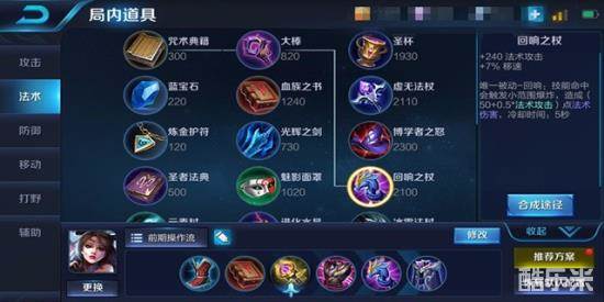 第五件应该选择出法术攻击装备,毕竟前面所提供的法术攻击有限,可选择回响之杖提升消耗能力及总体移速。选择炽热支配者提升蓝量及残血对拼能力(敌方有真实伤害不考虑),提升打坦穿透能力选择虚无法杖(痛苦面具提升的冷却会有所溢出,且75点法穿后期效果一般,不推荐做)