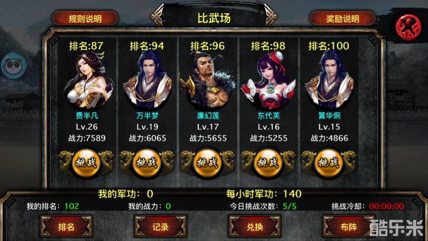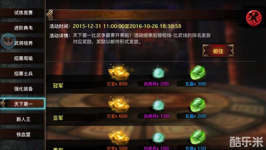 【参与方式】玩家可在游戏界面点击校场,然后选择比武场,挑战其他玩家,获胜即可提升排名名次。