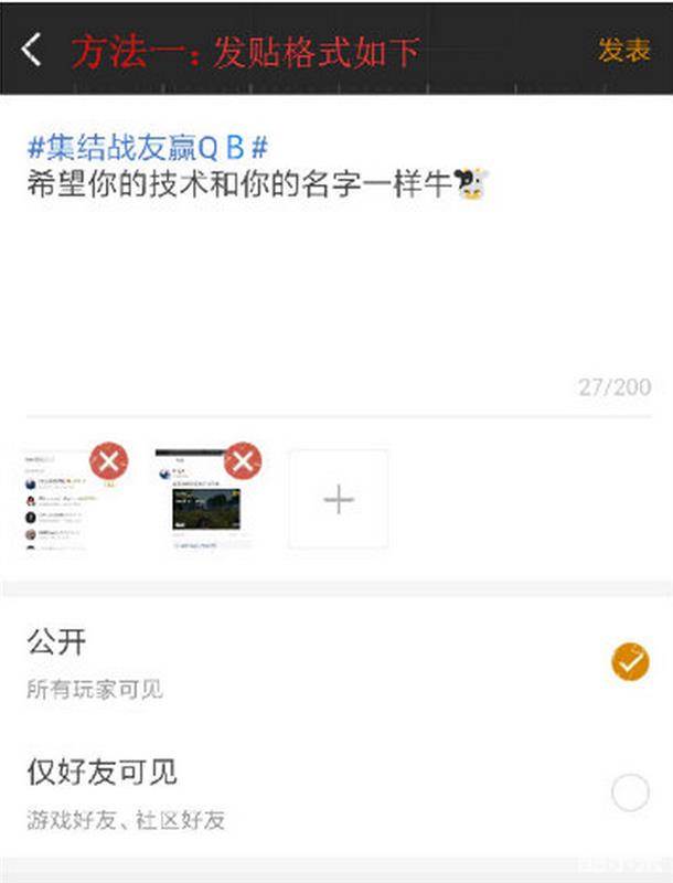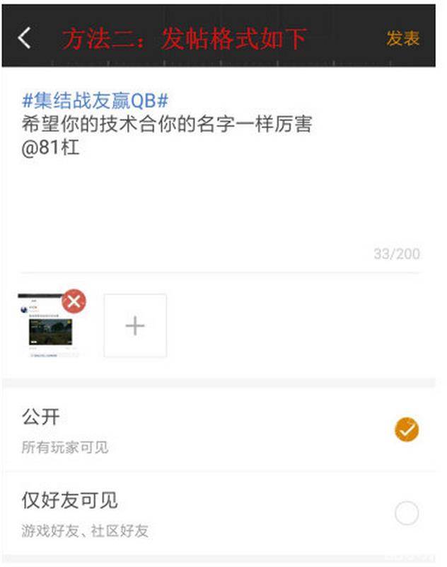 方法二:在#集结战友赢QB#标签下,说出你与好友之间的故事,并@他