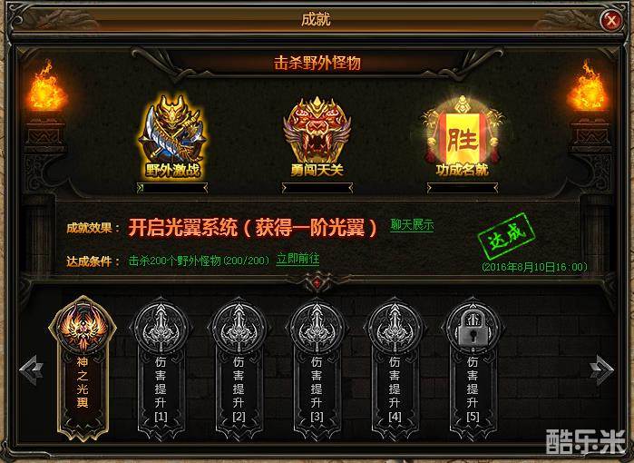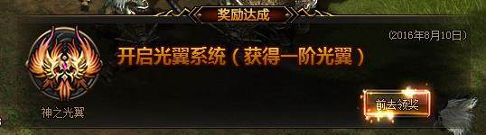 点击【前去领取】或者主界面上的成就按钮,进入成就界面,点击领取奖励,即可领取光翼