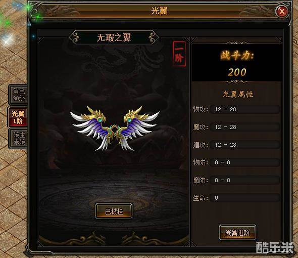 升级光翼有一定成功几率哦!万一脸黑失败了不要紧,失败的话系统会自动为玩家累计祝福值,祝福值越高升级光翼的成功率越大。