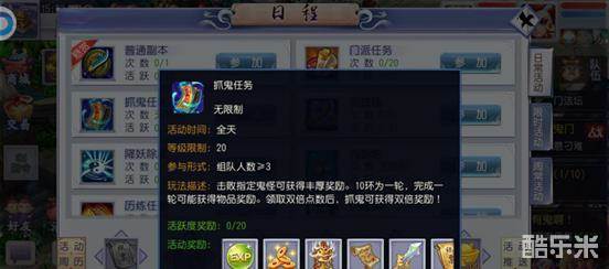 4、每天可完成120次捉鬼任务,120次以后奖励将大幅下降,若使用双倍点数后则不会下 降。