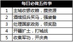 在这游戏里各位小伙伴是不是都在为如何提高等级,如何获取获取银币、粮食等资源而发愁呢?小编整理了游戏中每日必做的5件事,下面让我们一起来看看吧!