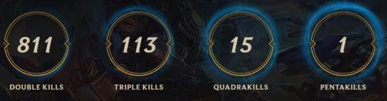 对于xiaohu而言,今年无论赛场上或者排位中,五杀都是可遇而不可求,只拿到过一次,毕竟xiaohu在RNG战队时被队友抢五杀抢多了,对此也不怎么在意,他的四杀次数有15次,三杀则高达113次,也是相当厉害的数据了。