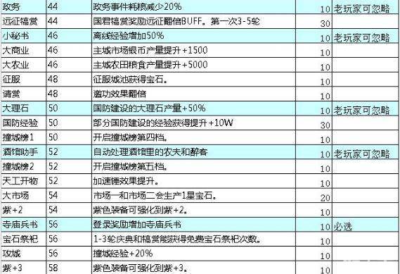 1、政务(政务事件耗粮减少20%)效果微不足道,新区玩家都可以忽略。