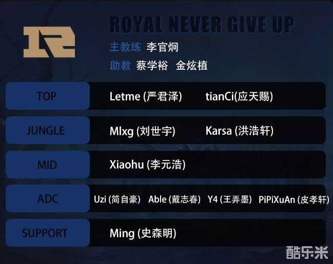 ADC:简自豪(Uzi)、王弄墨(y4)、戴志春(Able)、皮孝轩(PiPiXuAn)