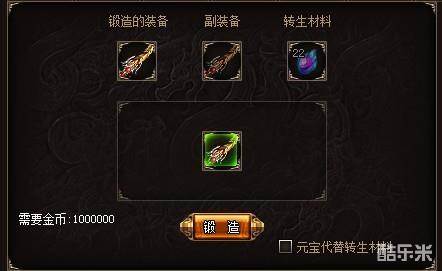 至于翅膀合成,不多说,绝对是需要时间去攒的,毕竟这么炫的东西,花点小钱也是应该的。转生锻造是需要条件的,因为转生之后的装备,是有穿戴要求的,也就是说,在没转生之前,绝对不要拿装备去转生锻造,那样会造成装备无法穿戴的窘况。