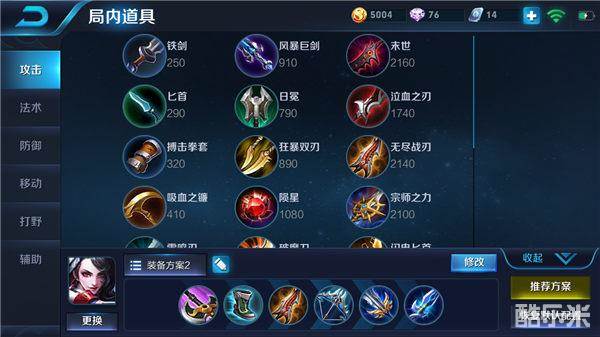 巡守利斧可以提升阿轲的打野效率与经济,还可以将惩击升级为寒冰惩击提升gank成功率,巡守利斧在击杀野怪的同时可以叠加最大生命值,保证了阿轲前期的生存能力。抵抗之靴增加了阿轲的法术防御与韧性,缩短了她被控制的时间,增强了她的收割能力。无尽战刃增强了阿轲的暴击率和暴击效果,提升了她中期的输出能力。破甲弓为阿轲提供了高额的物理穿透,很好的抑制了敌方的防御装备,能够帮助她在中后期依旧打出可观的伤害。破军的被动破军对于低血量的敌人拥有额外的伤害,大大提升了阿轲的收割能力。名刀·司命在阿轲受到致命伤害时会获得短暂的无敌状态并增加移动速度,为她的反杀制造可能。