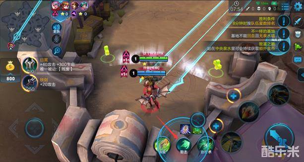 1) 5个队伍在战场中争夺资源获取经济,击杀其他阵营的英雄可以获取星星。关卡倒计时固定为8分钟,第8分钟时,根据队伍星星数量排名,本地图不存在胜利和失败,只会按照第一至第五排序。