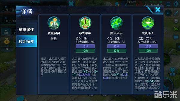 被动-黄金闪闪:太乙真人周围若有敌方非英雄单位死亡时,太乙真人和附近的队友会获得额外的金币加成。