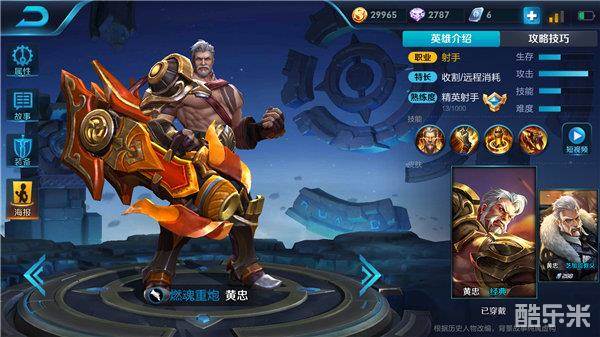 解析:被动使黄忠获得更高的输出,并且重炮会翻倍,可谓是非常可怕了,连续的普攻可以使黄忠获得强大的输出能力。
