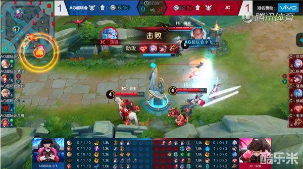 比赛进行到3分钟左右,娜可露露在拿完蓝BUFF后身上拥有双BUFF的加成,这时候诸葛亮跟着娜可露露与下路的铠和关羽汇合,想攻打独自一人守塔的达摩。先是由铠开大越塔,使用二技能击飞达摩,达摩同时也释放了大招将铠击退至墙边,触发了大招二段,但此时的关羽也马上跟上使用冲锋姿态下的一技能将达摩击退,娜可露露再释放技能进行补充伤害,达摩大招的二段发挥不了作用,最后诸葛亮使用大招完成收割。