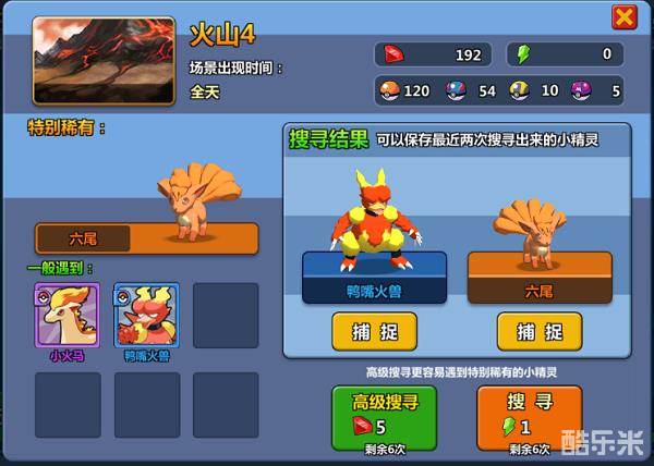 在场景里面搜寻宠物有两种搜寻方式,总共20次机会。搜寻结果可以保留最近两次搜寻出来的小精灵,倘若精灵球不够的话,这时候出去补充精灵球,场景精灵是不会消失的