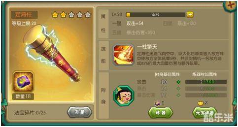 国漫经典IP、正版授权改编的四九游戏《葫芦娃》手游中,通关16-7关卡即可获得系统赠送定海柱并解锁,可以附体三娃一次打多个前排,横扫一片哦!