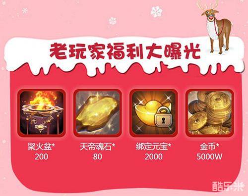 随着新年来临,又一轮好礼大馈赠即将拉开序幕!12月28日起进入官方微信公众号,即可领取绑定元宝、珍稀道具等丰富奖励,老玩家回归更可获得法宝“聚火盆”大量碎片,多重进化点击获得!