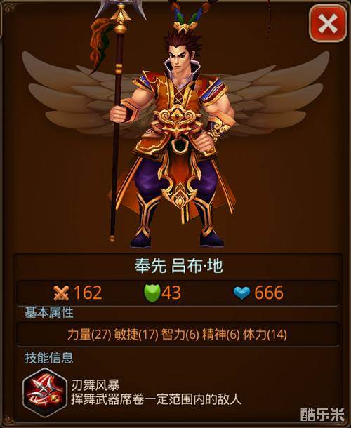 吕布是中国英雄,超高的基础力量,不愧为陆地最强的男人。堪比血库的生命力,横扫一切的方天画戟,可惜那身战袍简直就是纸糊的!而且还是个脑残。挥舞武器可以袭击一定范围内的敌人,冲进敌人堆里伤害简直吓人,但是有前无后有死无生的战斗风格注定需要强大的控制或保护。