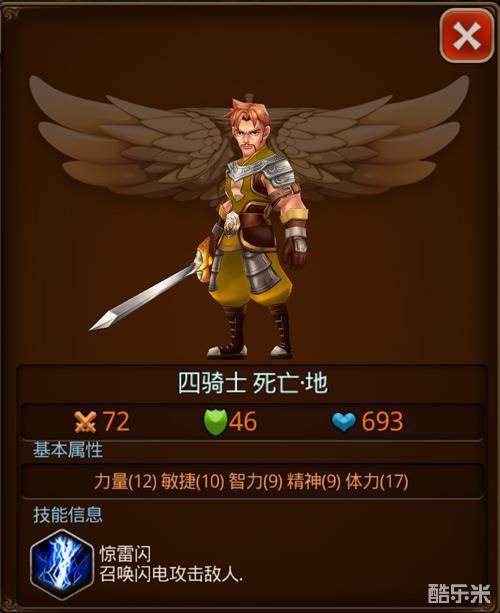四骑士·死亡虽然长得比较挫,但是实用性很强。虽然手上拿着那把剑完全就没开锋,攻击力低得有点可怜,但是胜在血够厚,最重要的是技能附带眩晕效果,强控流第一前排,技能冷却时间相当短,并且配合高技能等级,伤害还算客观。
