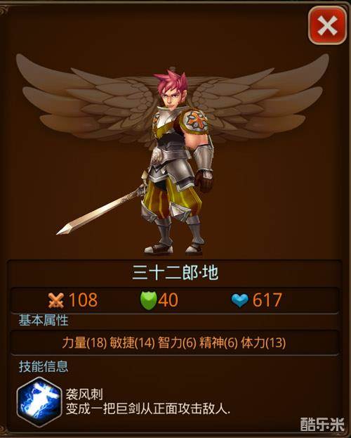 三十二郎长得极其像我们的杨坤哥,至于帅不帅就见仁见智了,但是32场演唱会还是挺吓人的。言归正传,三十二郎的袭风刺能变成一把巨剑,从正面攻击敌人,这个技能打击范围极大,伤害足,运气好或者操作好的话可以直接冲击后排。