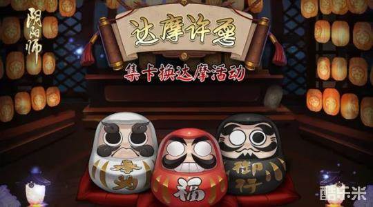 来自达摩们的新年祝福已送达,请注意查收!12月27日维护后至2018年1月9日23:59,活动期间通关御魂副本、探索副本或参与悬赏封印,均有概率获得达摩卡。使用一定数量的达摩卡可兑换对应达摩奖励,活动期间最多可兑换10个招福达摩、5个奉为达摩和2个御行达摩哦。