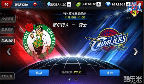 期待火箭打勇士么?渴望看到骑士对战凯尔特人么?这些关键战役永远是最抓人眼球的。在新版本当中,玩家也可以亲身参加关键战役了。根据NBA真实关键赛事,推出同场次限时关键战役挑战赛,玩家通过提前挑战两支对阵球队,可以提升球队实力,还可以巩固加深对关键场次的印象,让玩家把最精彩的NBA赛事一网打尽。