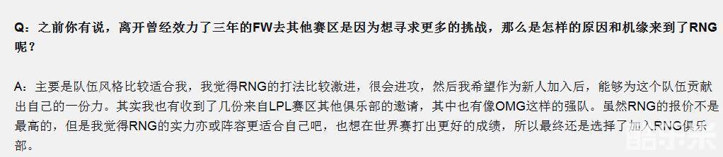 在此次LPL转会中,最令人意外和爆炸的新闻就是LMS明星打野加入RNG了,自从来到RNG后,关于他的种种传闻不断。近日,他在专访当中,道出了加入RNG的原委。