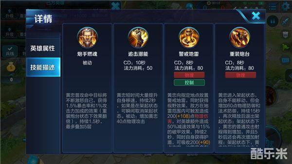 总结:黄忠作为现版本最特殊的射手,十分擅长打逆风局,可有效的拖延时间,为队友经济成型提供条件,大大提高了对局的稳定性,使得敌军难以推进,适合广大射手玩家的尝试使用,相信会给你带来不错的操作体验。