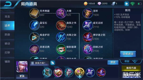 出装分析:抵抗之靴提供韧性和法抗增加生存。噬神之书通过大招施放期间的法术吸血来实现生存提高。痛苦面具按敌方当前血量比例附加伤害,是前期伤害不足时最大化输出的最佳装备。中期由于敌方输出开始崛起,需要通过辉月提供的无敌来抵抗高额伤害。虚无法杖和博学者之怒最大化法术攻击,是高额伤害量的保障。